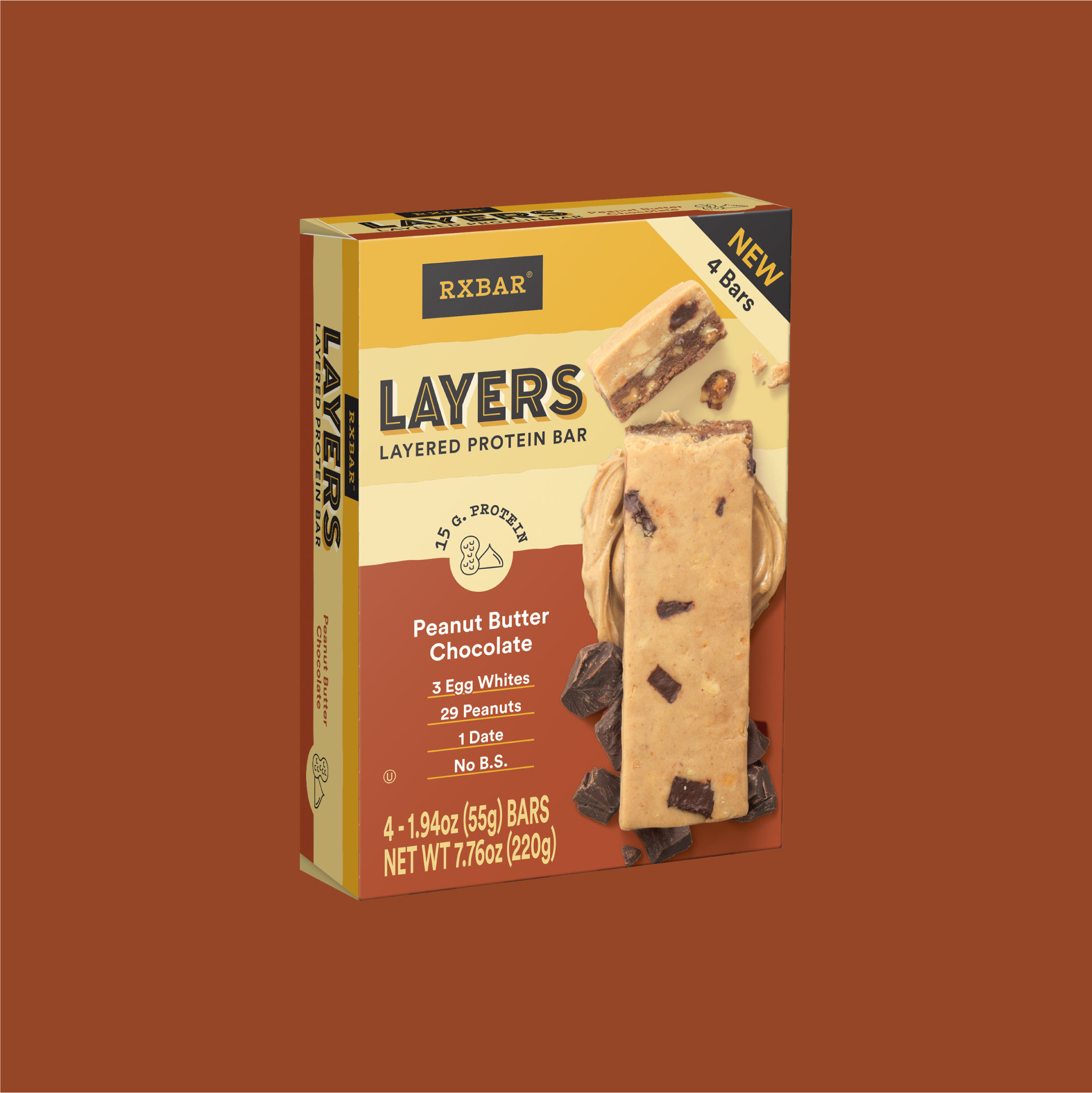 Developed an easy-to-understand brand pillar system for current and future offerings which informed the design strategy and packaging. A new benefit-driven offering, RXBAR Layers maintains key brand assets to remain familiar to consumers, but creates a new package language that speaks to the rich and decadent nut butter and bar layers of the product.
